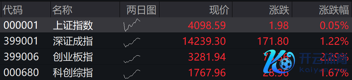沪指高开0.05%,深成指高开1.22%,创业板指高开2.29%,科创综指高开1.67%。