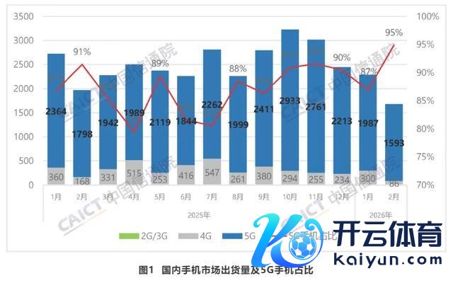 3月25日讯息,据中国信通院最新发布的陈诉显现,2026年2月国内市集手机出货量1678.9万部,同比下落14.6%,其中5G手机1593.1万部,同比下落11.4%,占同时手机出货量的94.9%。