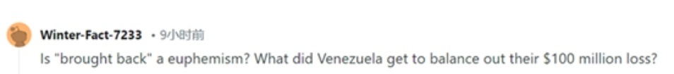 “‘带追忆’是委婉的说法吗?委内瑞拉得到了什么来弥补他们亏损的1亿好意思元?” ↓