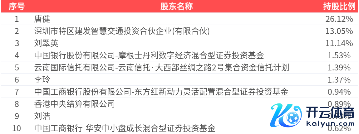 公司推动户数为3.64万户,前十大推动握股数目为3.72亿股体育游戏app平台,占总股本比例为57.77%,前十大推动握股情况如下: